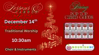 Join us for December and Christmas Eve worship services filled with hope and joy.